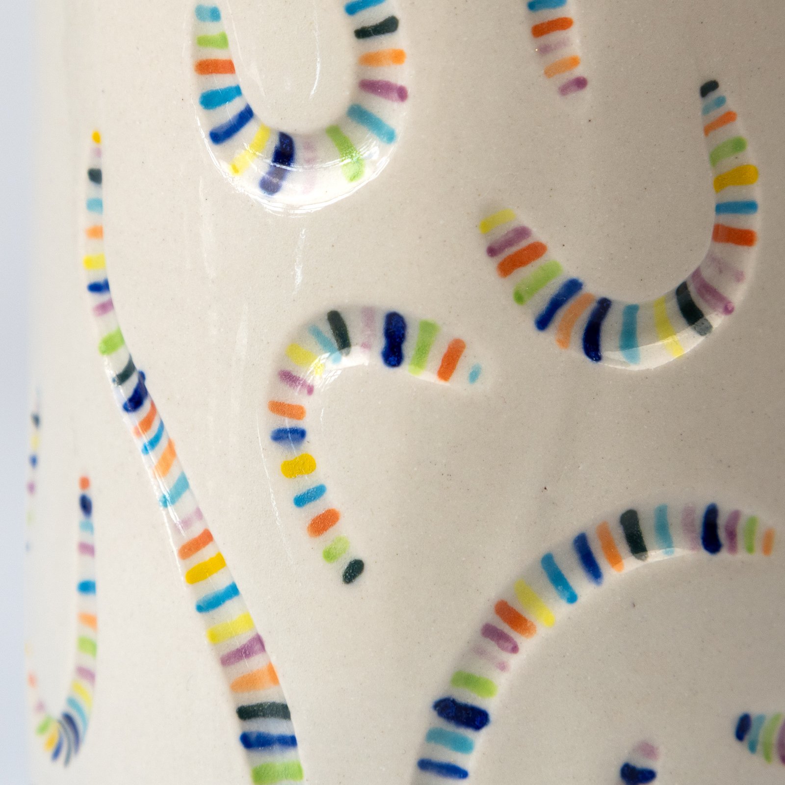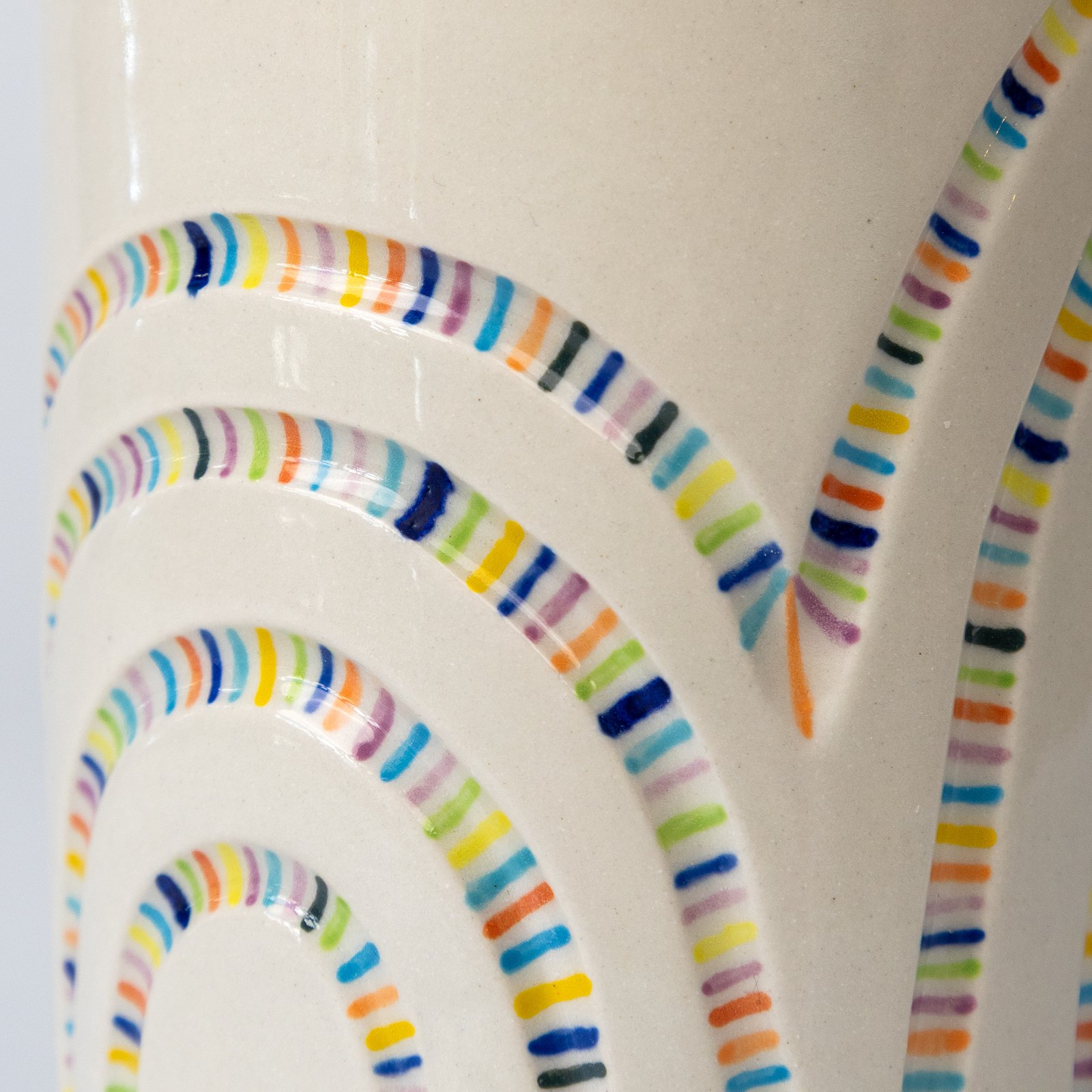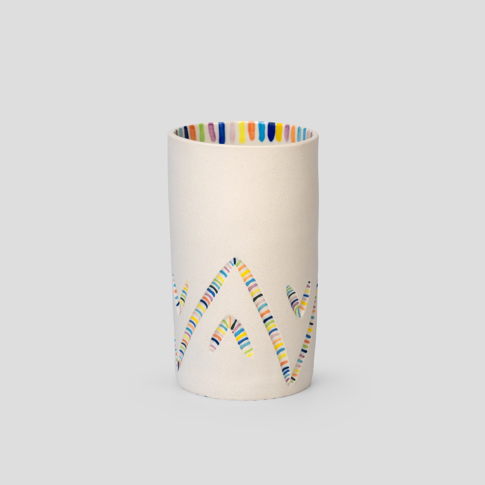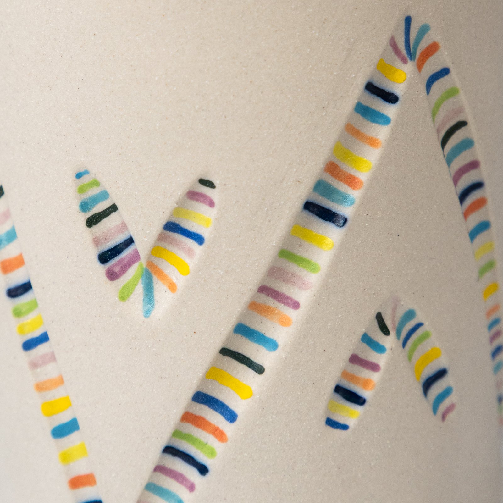 Προσθέστε μια παιχνιδιάρικη νότα χρώματος στο χώρο σας με αυτά τα χαρούμενα κεραμικά βάζα. Κατασκευασμένα από λευκό stoneware πηλό, διαθέτουν μια χαραγμένη διακόσμηση γεμάτη με ένα ζωντανό σχέδιο που μοιάζει με κονφετί. Διαλέξτε μεταξύ ματ ή γυαλιστερής υφής στο εξωτερικό μέρος.