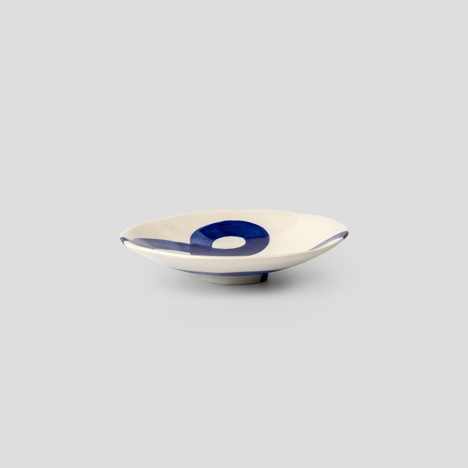 Αναβαθμίστε τον χώρο σας με αυτό το όμορφο, χειροποίητο πιάτο. Η μοναδική του αισθητική και η ευέλικτη χρήση του το καθιστούν απαραίτητο. Ιδανικό για να αποθηκεύετε τα κοσμήματά σας ή άλλα μικροαντικείμενα (trinket tray), προσθέτοντας στυλ στον κομοδίνο ή την κονσόλα σας. Χρησιμοποιήστε το ως ένα κομψό βοηθητικό πιάτο για να σερβίρετε μεζέδες και γλυκά με ιδιαίτερο στυλ. Είτε απλώς διακοσμήστε το σαλόνι σας με μία μοναδική σύνθεση FLOW, όπου τα μπλε μοτίβα ενώνονται δημιουργώντας οπτική ροή. Kατασκευασμένα απο λευκό stoneware πηλό, διακοσμημένα με μπλε μοτίβα και υαλωμένα με διάφανο υάλωμα.